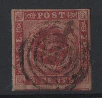 Mange bedre klassiske frimærker til gode priser. Danmark stemplet nr. 2b, 2RBS type 6, gode rande på alle fire sider. 2250,-kr